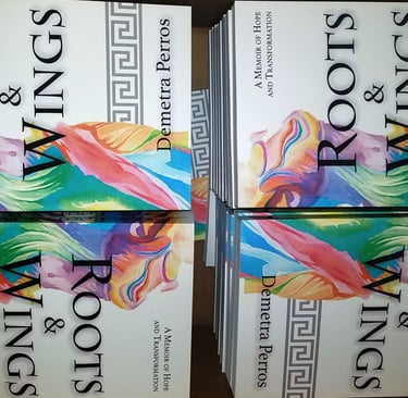In 2017, Demetra had the opportunity of collaborating with Mneme Press, a Seattle-based publisher that acknowledged her not only as a writer, but also as an actor, Greek American, and mother-to-be. Demetra told them she wanted to sell her memoir at her performances, keep the rights to her play, and start a family soon. They worked together to find a printing model that best met those professional and personal needs.